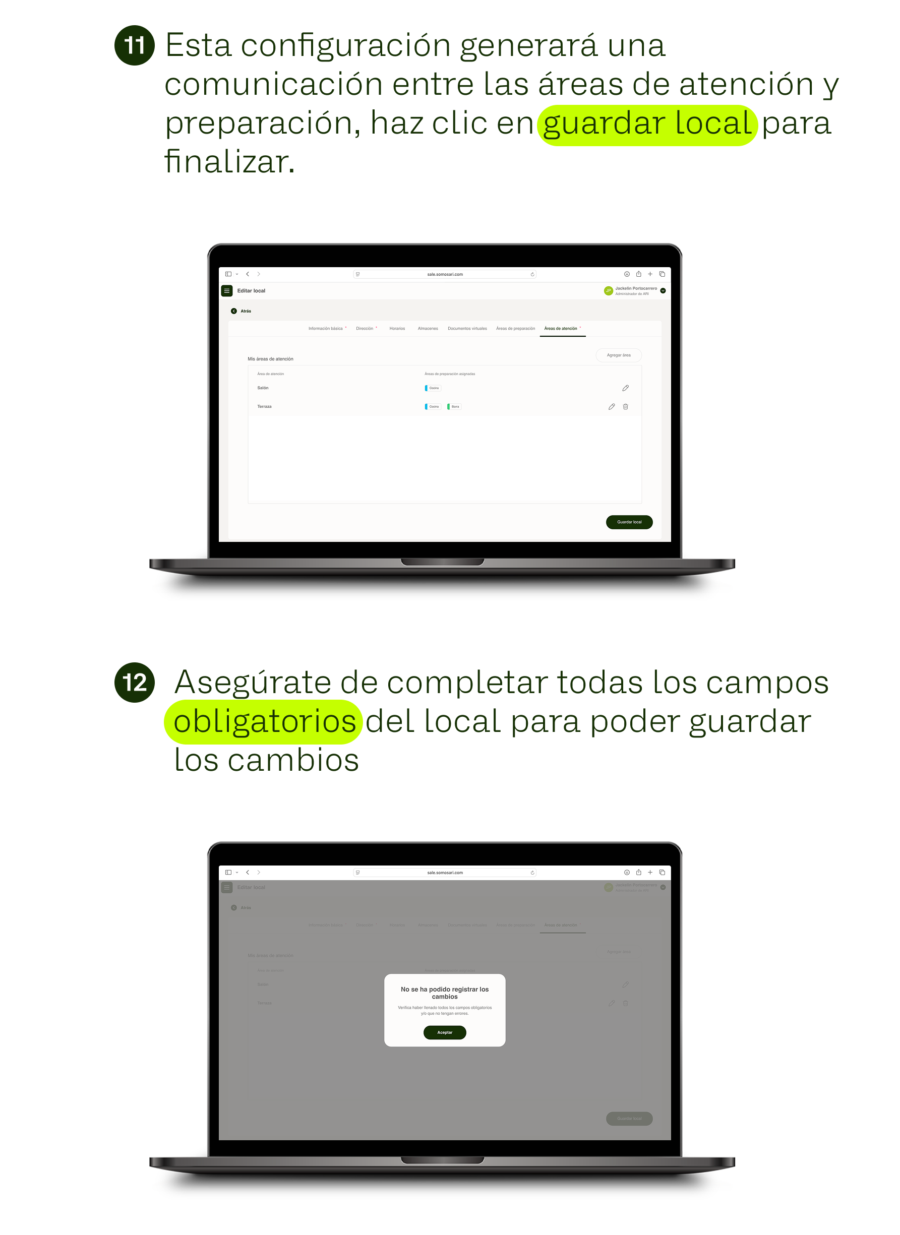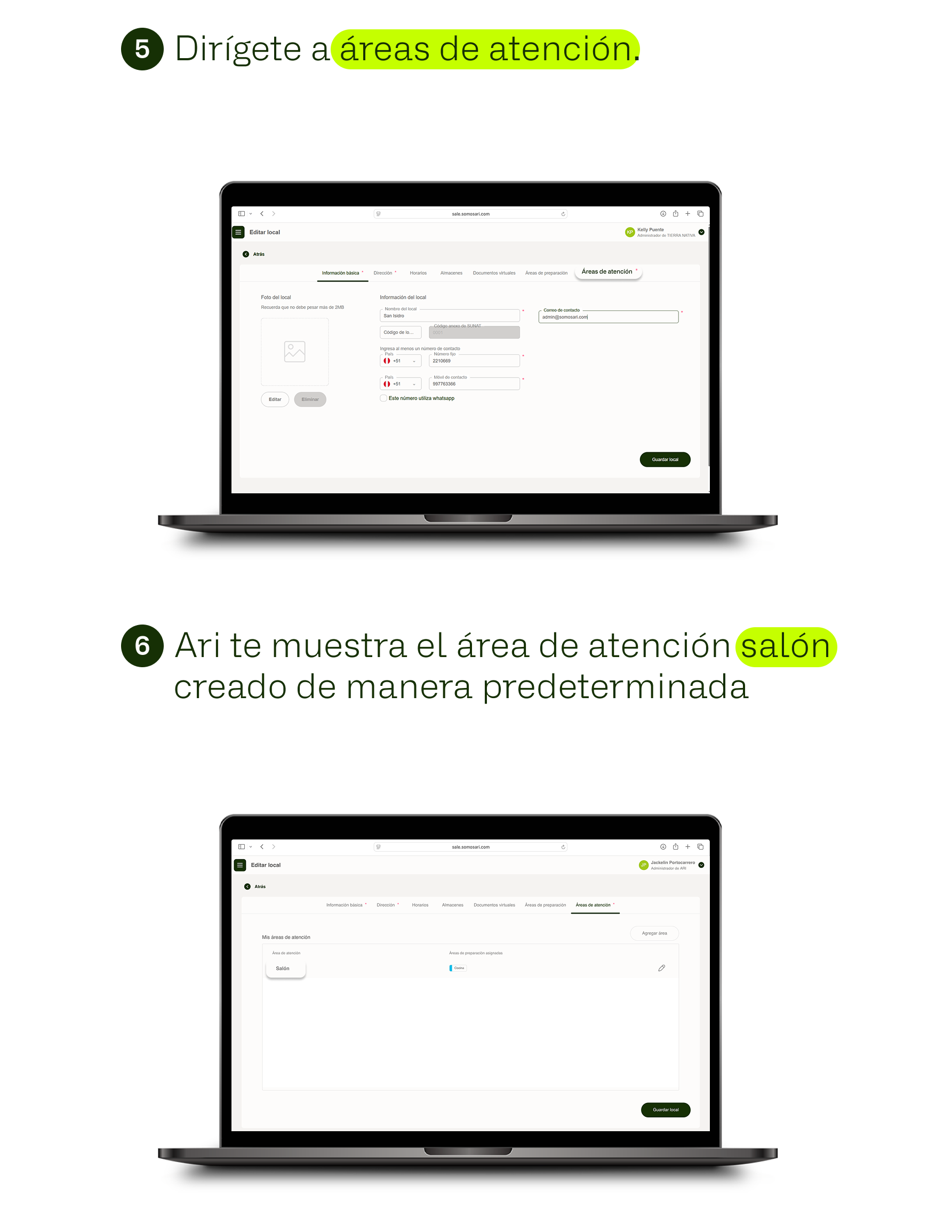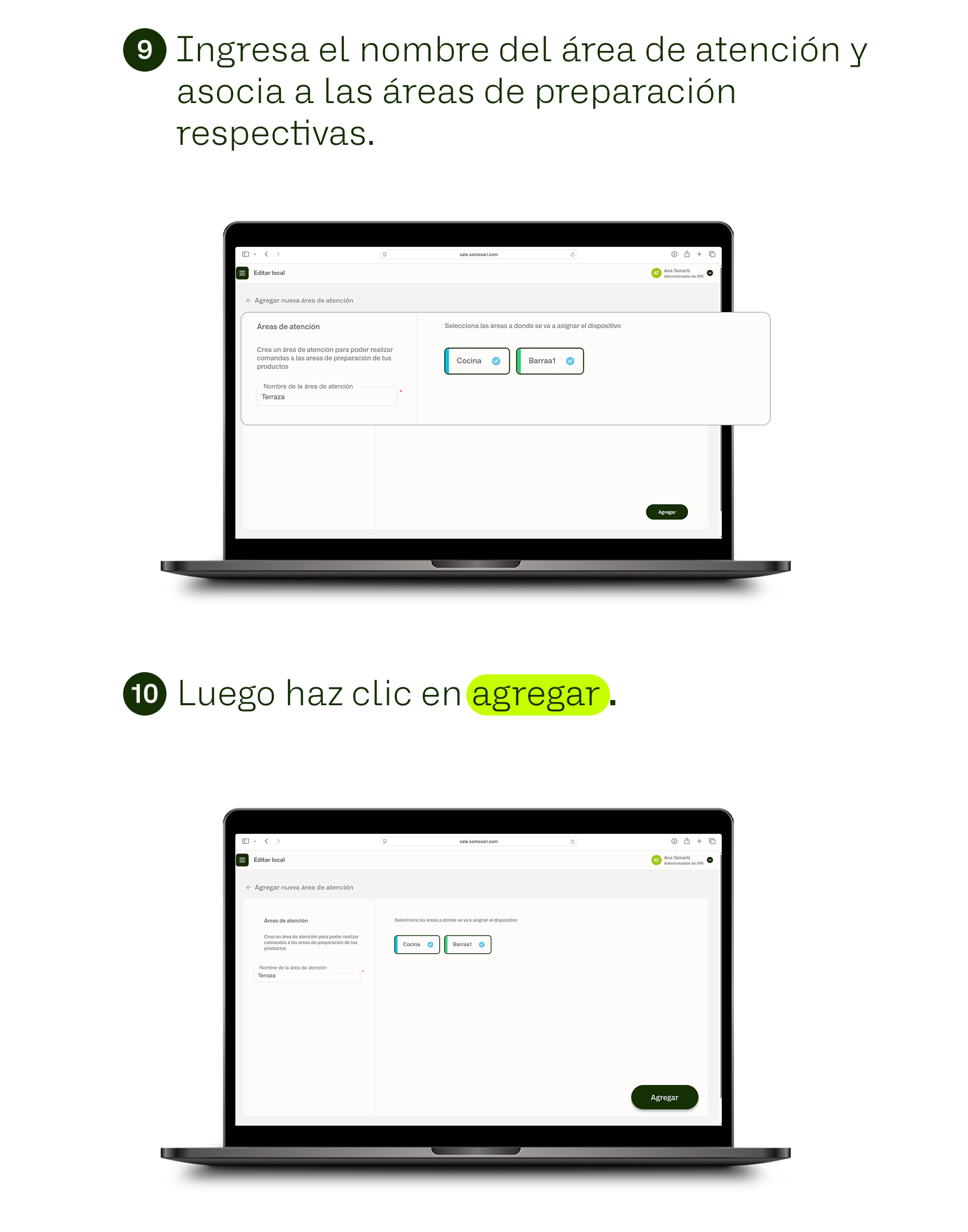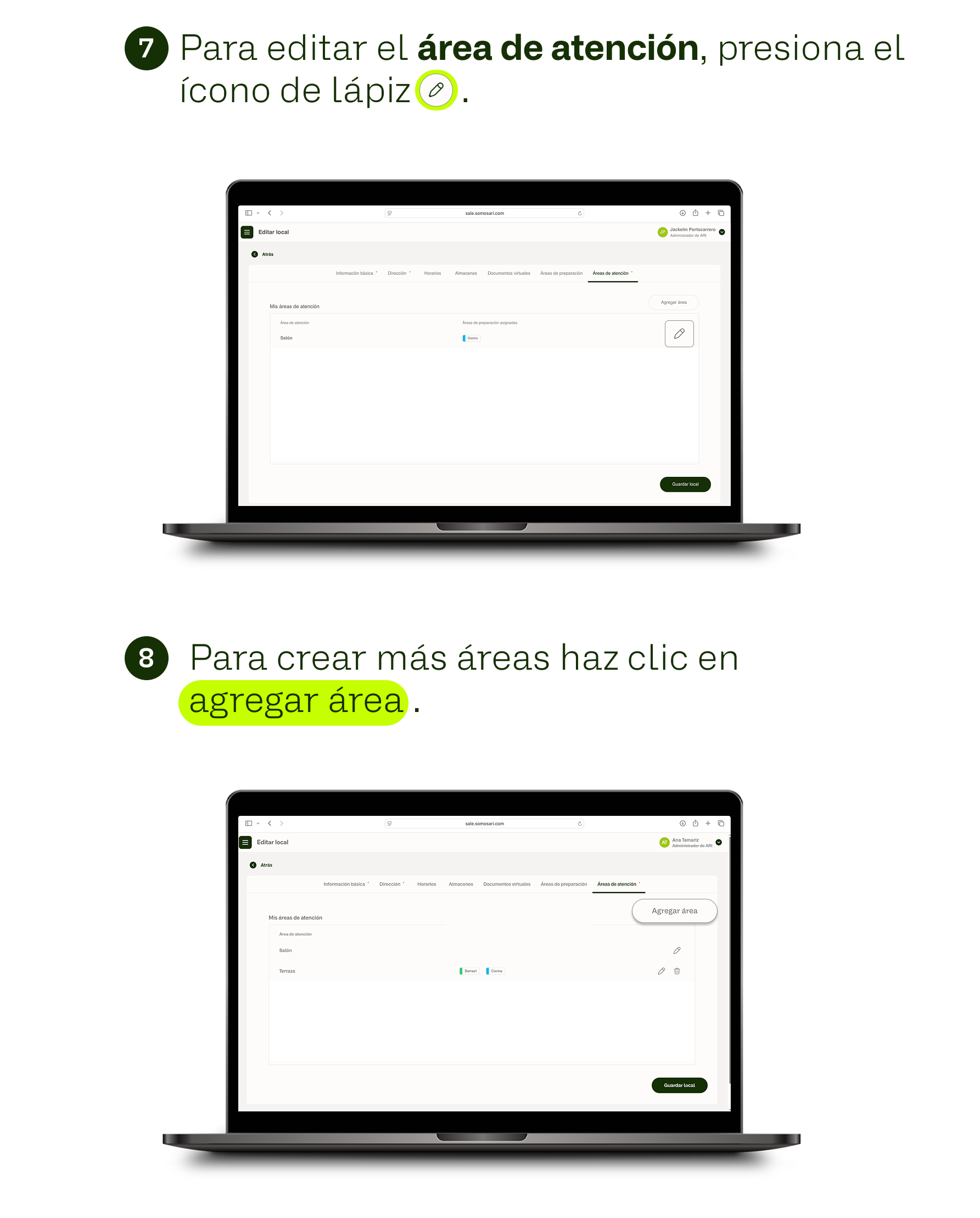 Creación de áreas de atención