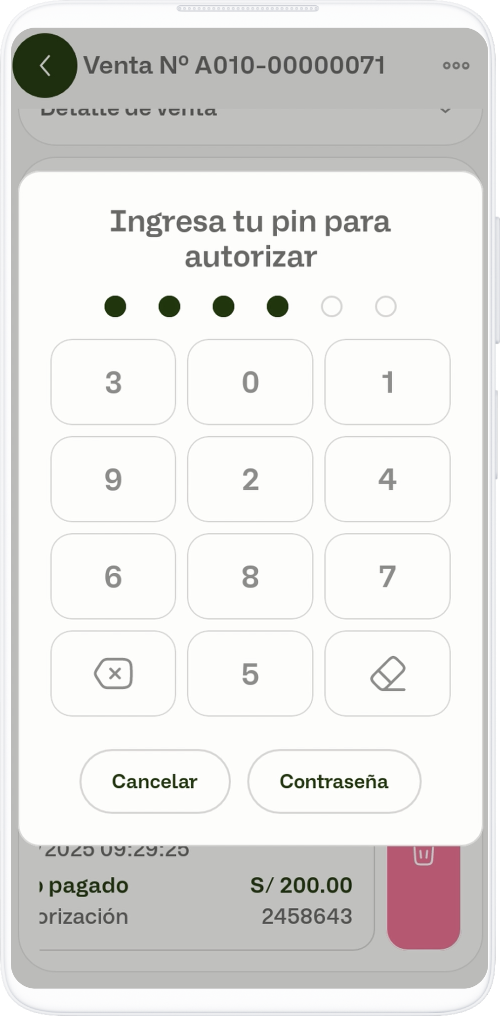 9. Si nuestro usuario tiene rol vendedor y tenemos activa la opción "solicitar autorización para anulación de pago" en la web de administración, aquí necesitaremos autorización para anular este pago. | ![]() |
