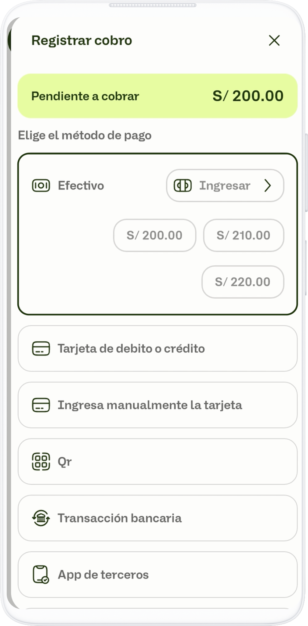 | 17. Si existe vuelto a entregar, Ari nos muestra el monto, tocamos sobre el para finalizar el cobro. | ![]() |