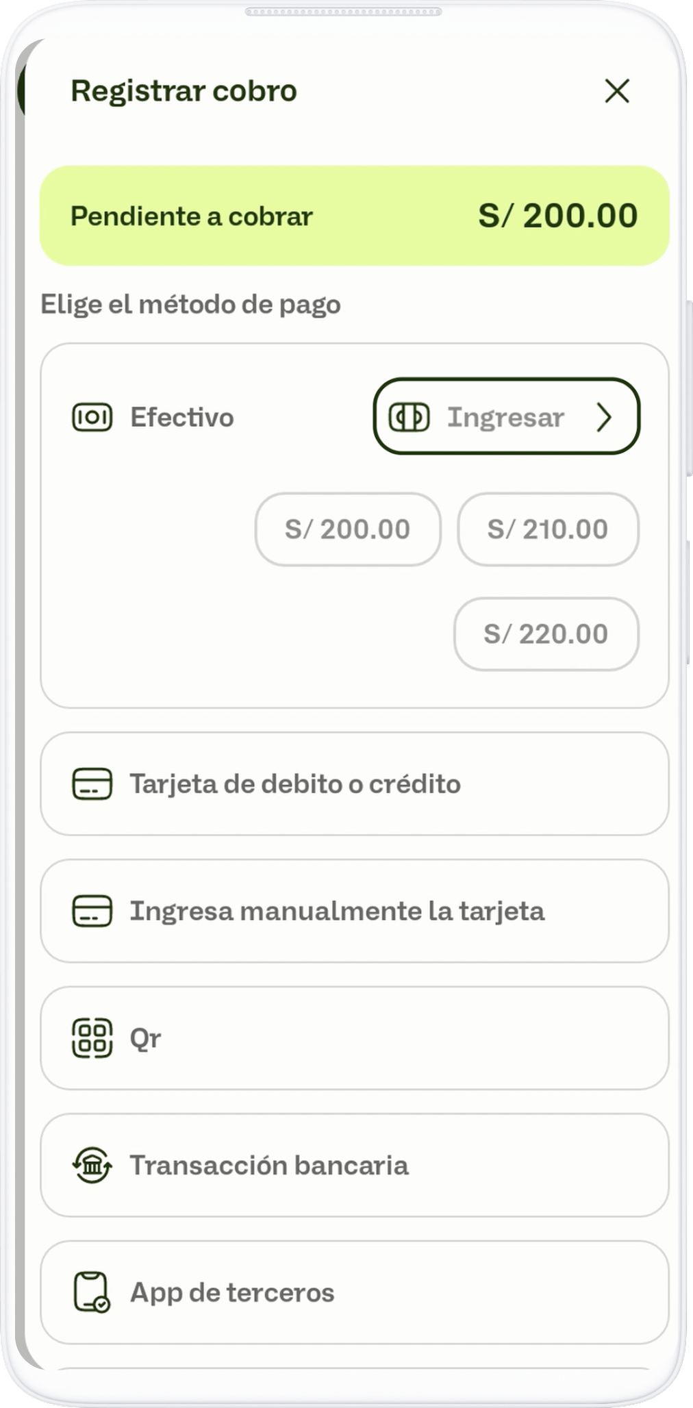 13. En esta siguiente vista elegimos el método de pago con el que vamos a registrar este nuevo cobro. por ejemplo efectivo. | ![]() |