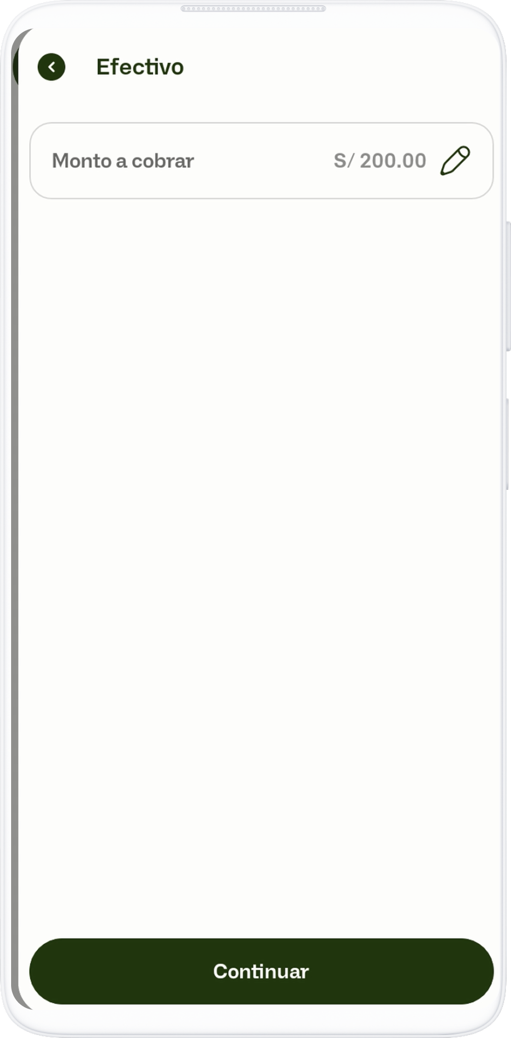 15. Verificamos que el monto a cobrar sea el correcto o podemos usar el lápiz para modificarlo, luego tocamos “continuar”. | ![]() |
