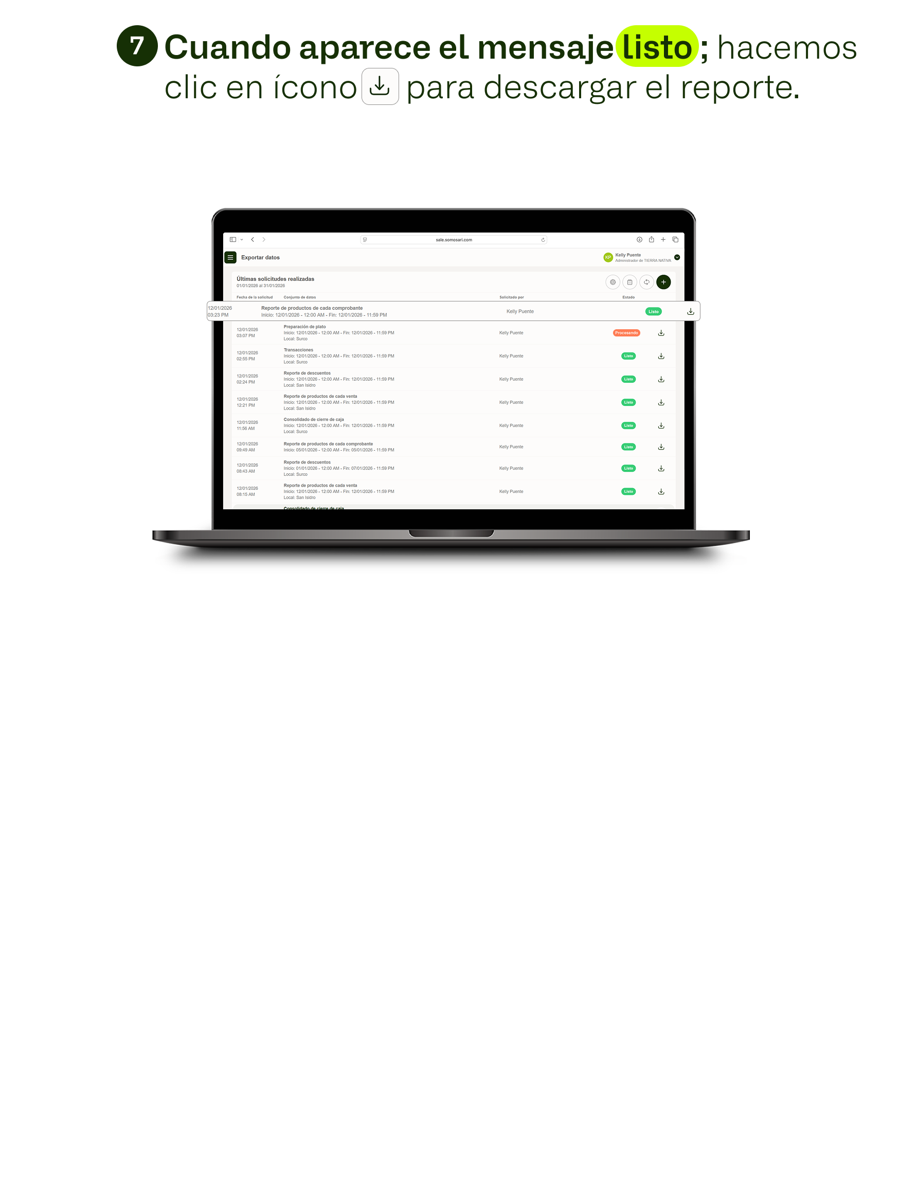 Reporte de productos de cada comprobante