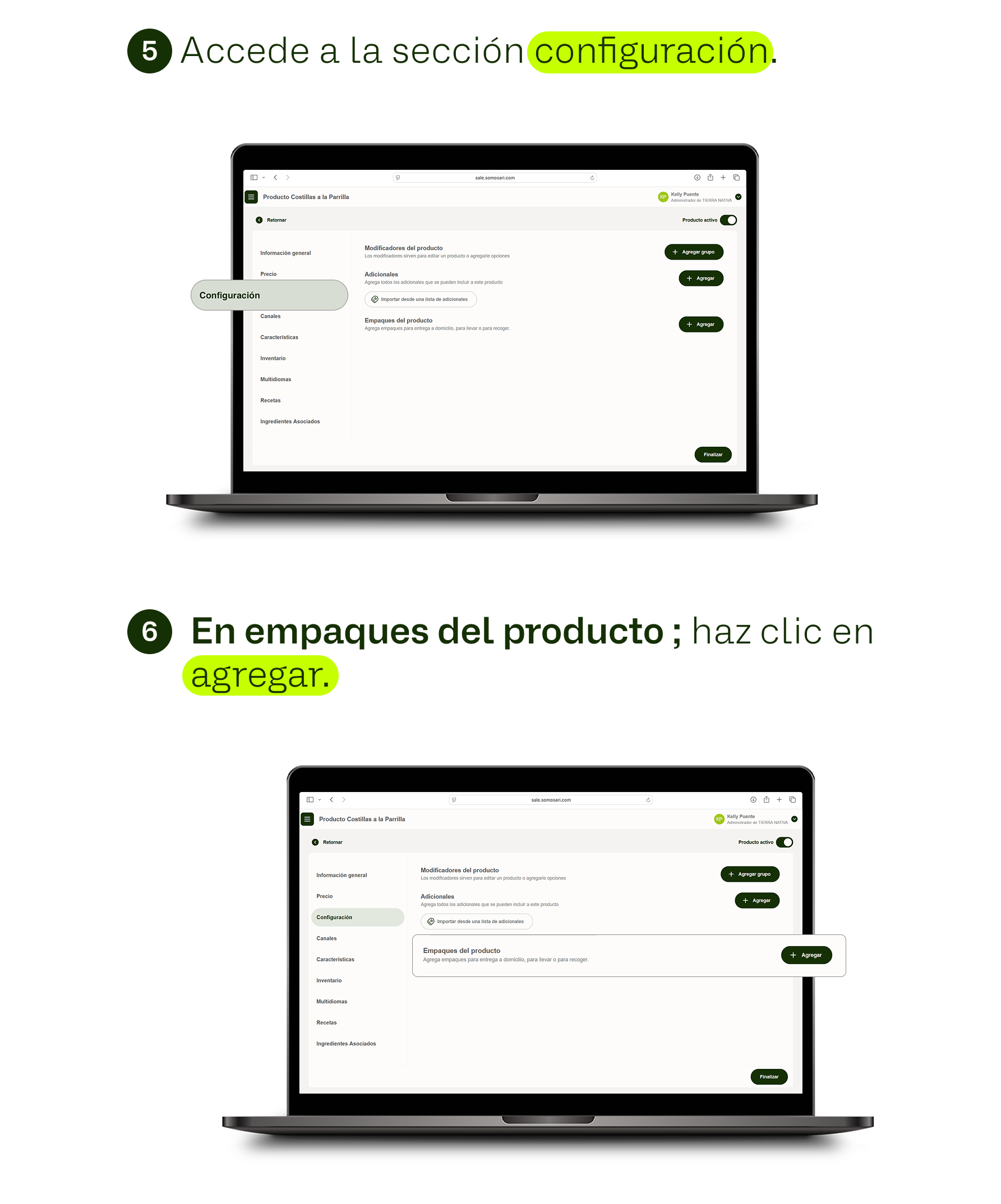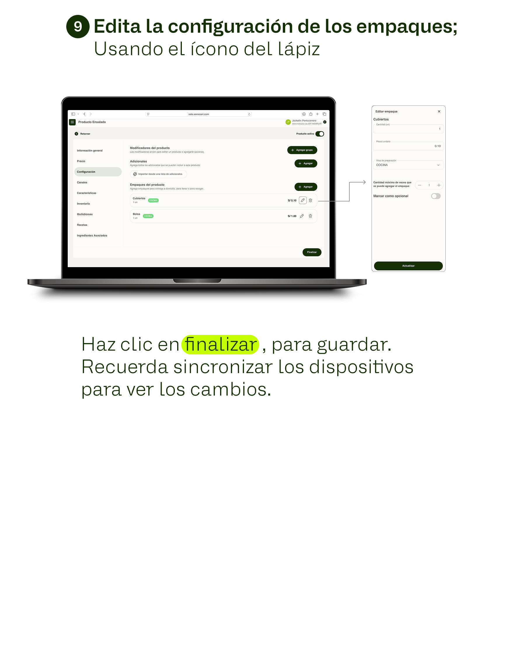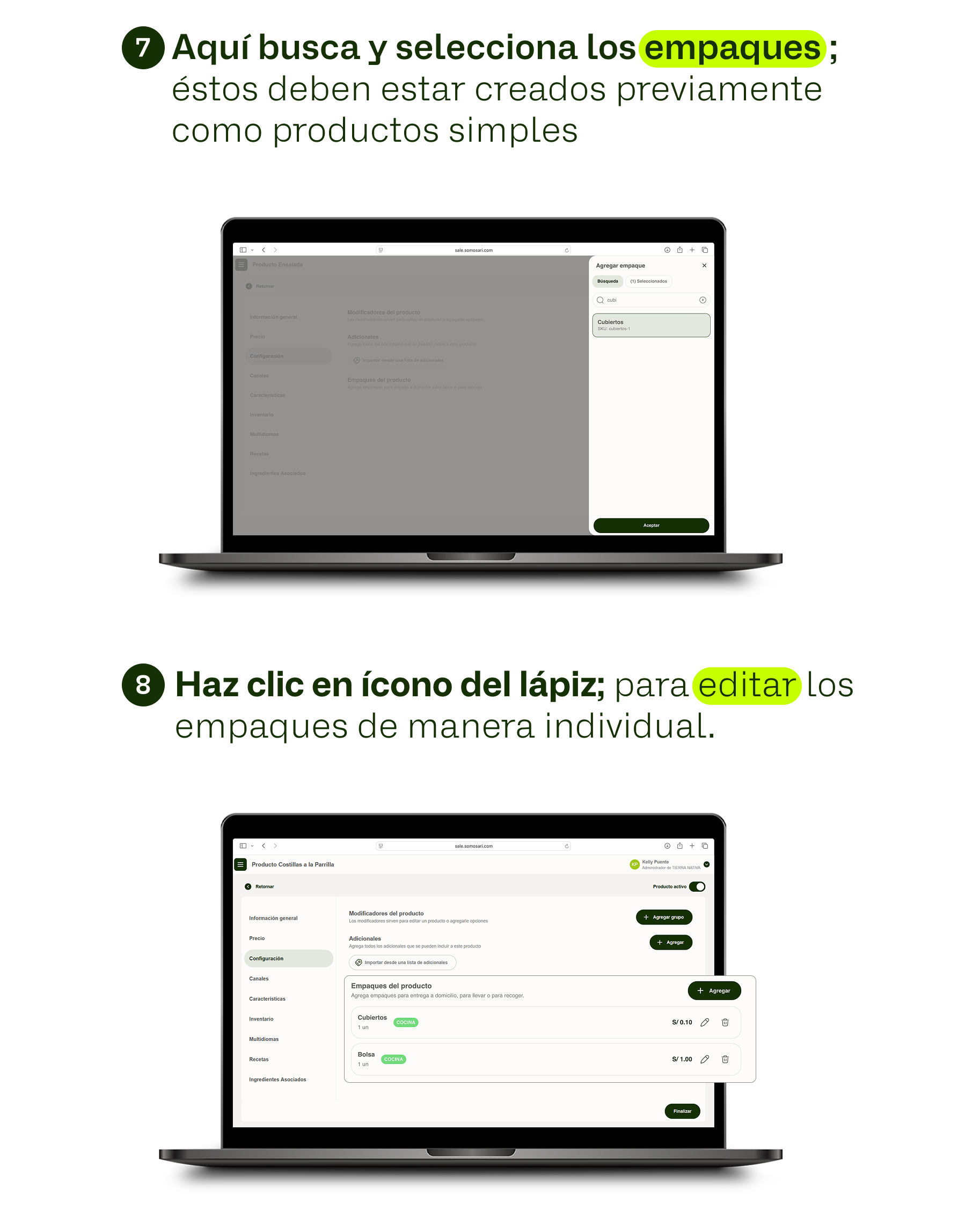 Agregar empaques a un producto